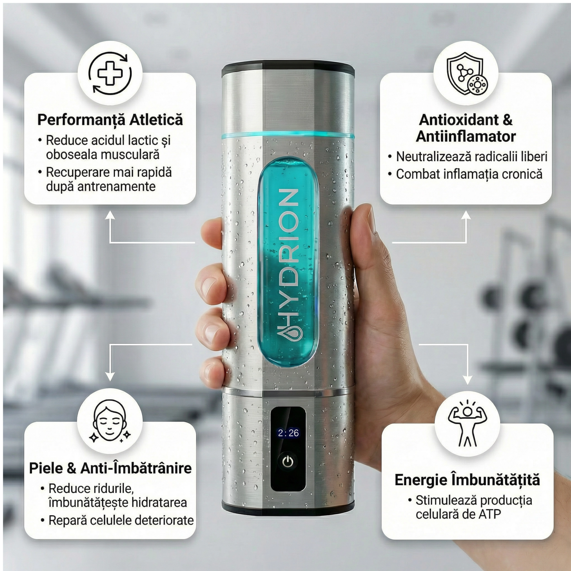 Descoperă puterea hidrogenului molecular — un antioxidant natural, ultra-mic, care, atunci când este infuzat în apă, pătrunde cu ușurință în celulele tale. Hydrion valorifică această descoperire științifică pentru a te ajuta să-ți resetezi corpul și să deblochezi potențialul pentru o sănătate vibrantă și longevitate.